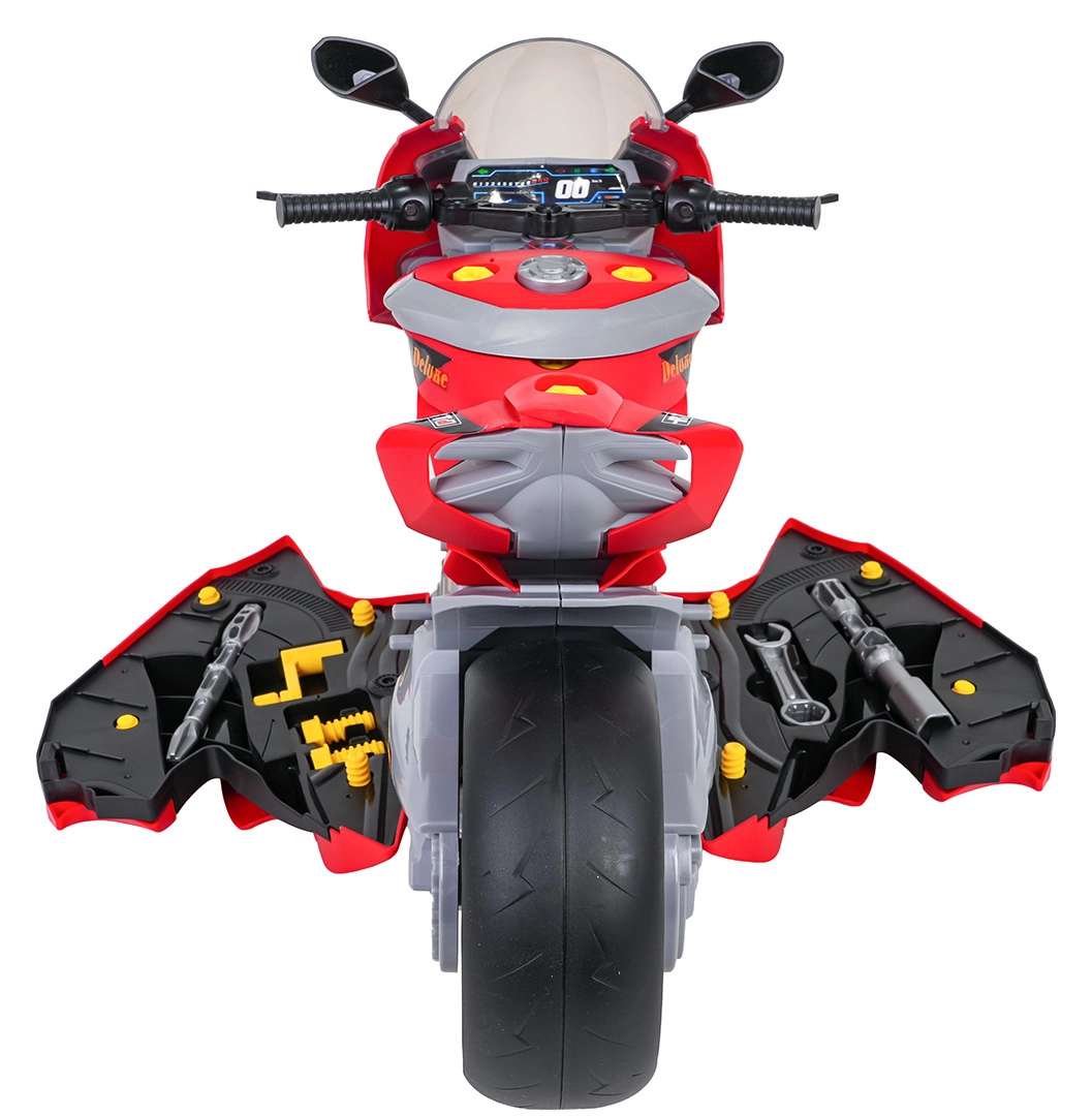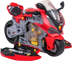 Ta pametno zasnovana igrača združuje motocikel za domišljijsko vožnjo in mehansko delavnico za male mojstre. Po odprtju bočnih panelov se razkrijejo svetleči bati motorja, ki jih je mogoče odstraniti in raziskovati. Otroci se na igriv način naučijo osnovnih principov delovanja stroja ter hkrati razvijajo fino motoriko in spretnost.
