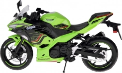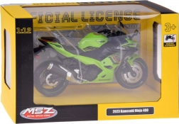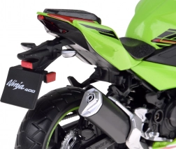 Oklepi s kontrastnimi grafikami, podrobni zavorni koluti, ogledala in instrumentna plošča zvesto posnemajo pravo NINJO 400. Odličen kos za vsako zbirko.