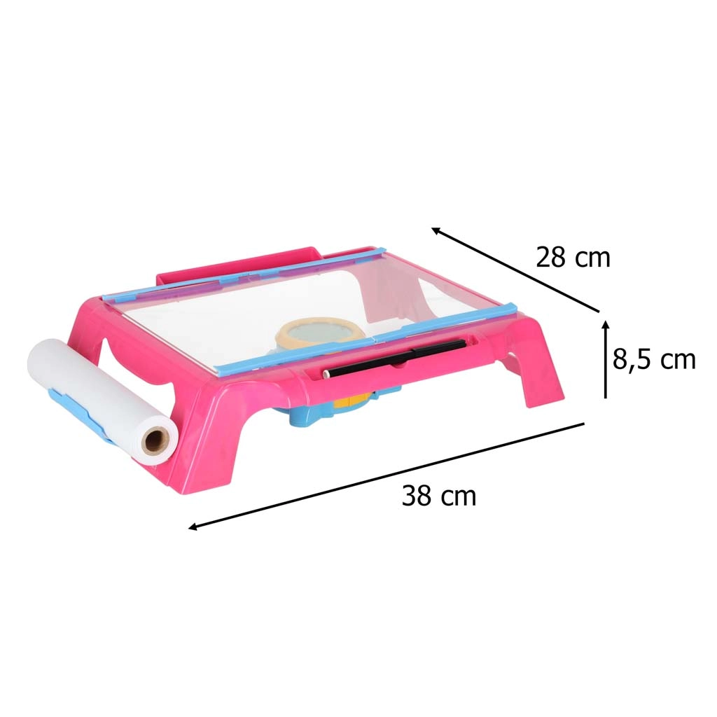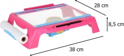 Ta kompaktna risalna mizica s projektorjem projicira slike neposredno na papir, zato lahko otroci preprosto prečrtavajo in se učijo risati korak za korakom. Pregledna delovna površina, podajalnik s papirnim zvitkom in 4 sponke držijo papir trdno na mestu. Nastavljiva leča projektorja zagotavlja ostro sliko za jasne linije.