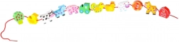 Natikanje lesenih delov na vrvico razvija natančnost prstov, potrpežljivost in zbranost. Idealna priprava na pisanje in risanje na igriv način.