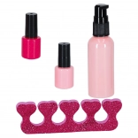 - Bogata oprema: čopiči, aplikatorji, »lak« za nohte, bleščice, glos, separator prstov in drugo.