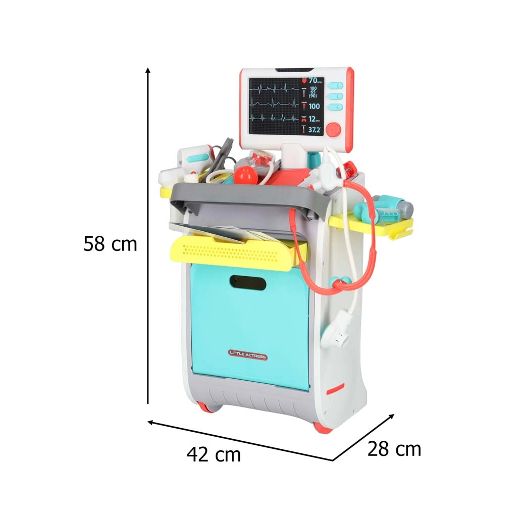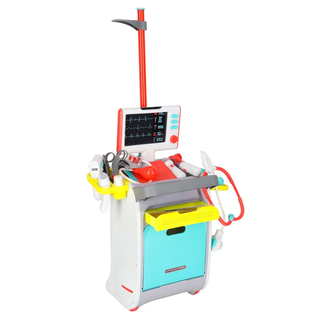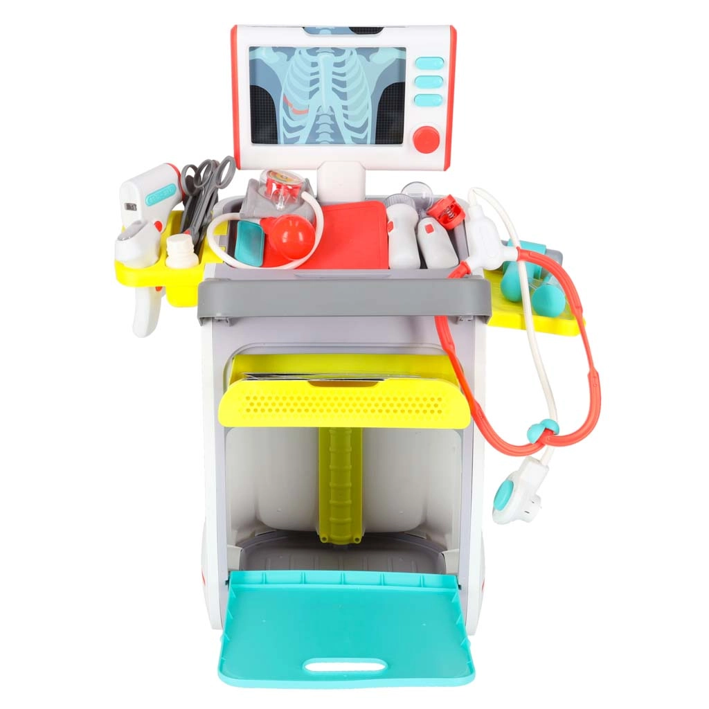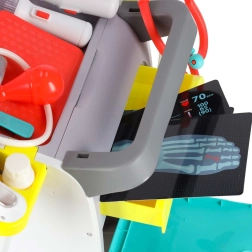 Ta interaktivna otroška zdravniška postaja spodbuja kreativno igro vlog, fino motoriko in socialne veščine. Postaja predvaja melodije in zvoke, izbrana orodja svetijo in se odzivajo, zato je pregled pacienta še bolj realističen.