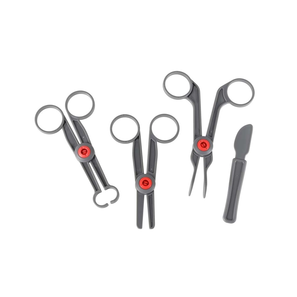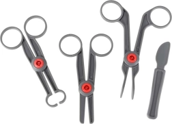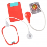 V kompletu najdete vse potrebno za male zdravnike: stetoskop (sveti in oddaja zvoke), merilnik krvnega tlaka, ultrazvok (sveti), svetilka (sveti), elektronski termometer (sveti in oddaja zvoke), zobni endoskop (sveti), pulzni oksimeter, nevrološko kladivce, škarje, klešče in pinceto, skalpel, brizgo, škatlo za zdravila, pisalno podlago s sponko in 6 RTG- in EKG-posnetkov.