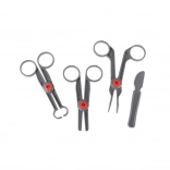 Od stetoskopa in merilnika krvnega tlaka do ultrazvoka, termometra in brizge. Ne manjka RTG/EGK posnetkov, škarje, klešče, skalpel in še več.