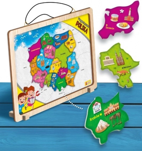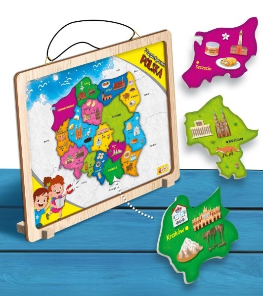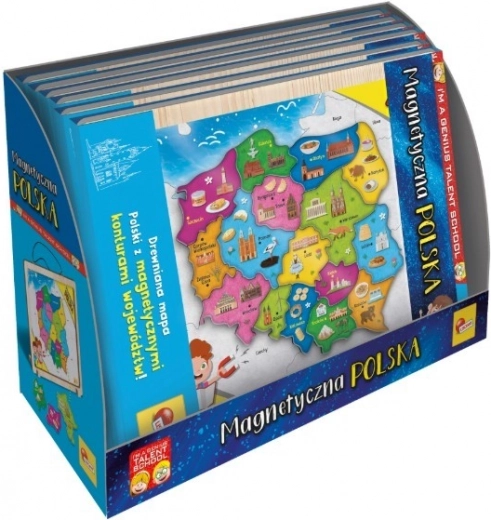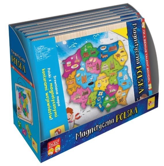 Magnetni zemljevid Poljske I'M A GENIUS je odlična izobraževalna pripomoček, ki združuje igro in učenje. Otroci med sestavljanjem zemljevida urijo fino motoriko, orientacijo na zemljevidu ter prepoznavanje regij in njihovih kulturnih posebnosti.