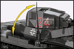 Vrtljiva kupola za 360°, nastavljivo oborožitev in realistične gosenice s kolesi omogočajo dinamične prizore, gladko premikanje in privlačno predstavitev modela.