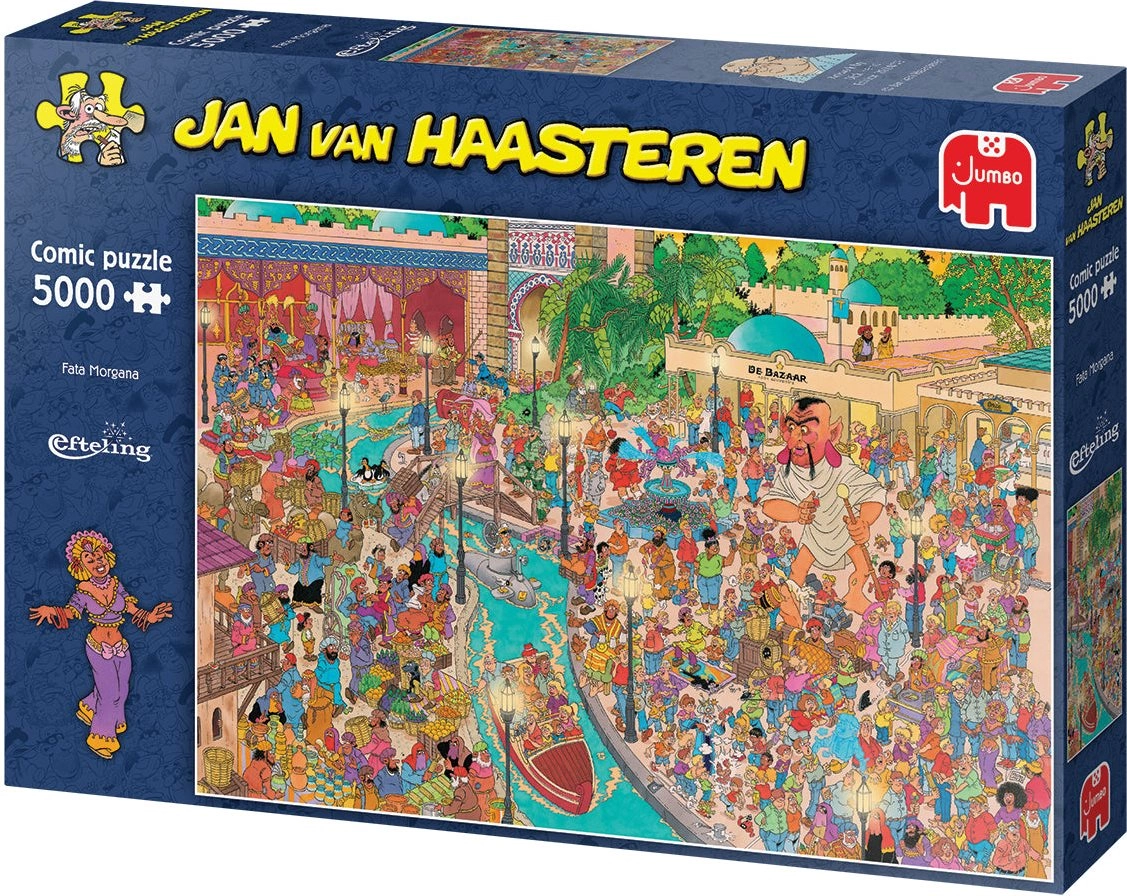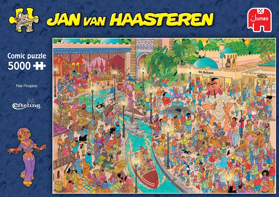 Odkrijte svet, poln humorja in podrobnosti, z legendarnimi sestavljankami JAN VAN HAASTEREN. Velikoformatna sestavljanka s 5000 koščki prinaša prizor Fata Morgana v Eftelingu, nabit z dovtipi, liki in ikoničnimi elementi, kot sta morski pes – plavut in nepripadajoče roke. Vrhunska kakovost JUMBO zagotavlja natančne koščke in dolge ure zabave.