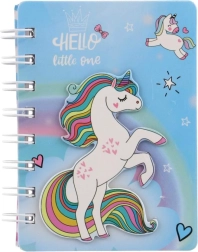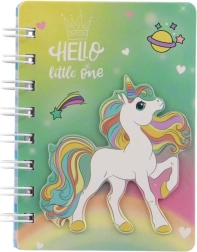 Ljubek kolesnični zvezek z motivom samoroga je idealen za otroke in odrasle za vsakodnevne zapiske, risbe in skrivna sporočilca. Zaradi kompaktnih mer 9,5 × 12 cm se zlahka prilega v nahrbtnik ali torbico in je odličen spremljevalec v šoli, na poti in med počitnicami. Praktična oblika, kolesnična vezava in barvit mavrični dizajn bodo razveselili vse ljubitelje samorogov.