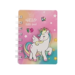 Odkrijte čaroben zvezek z motivom samoroga, ki navdušuje z igrivim mavričnim videzom in praktično kolesnično vezavo. Odličen je za zapisovanje opomb, risanje in beleženje idej kadarkoli in kjerkoli. Kompaktna velikost 9,5 × 12 cm zagotavlja, da ga boste imeli vedno pri roki.