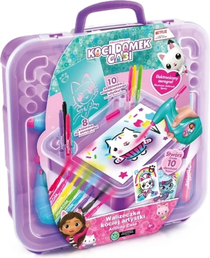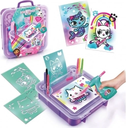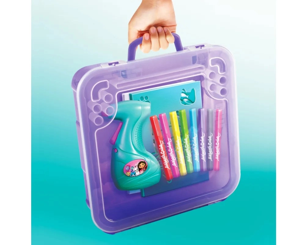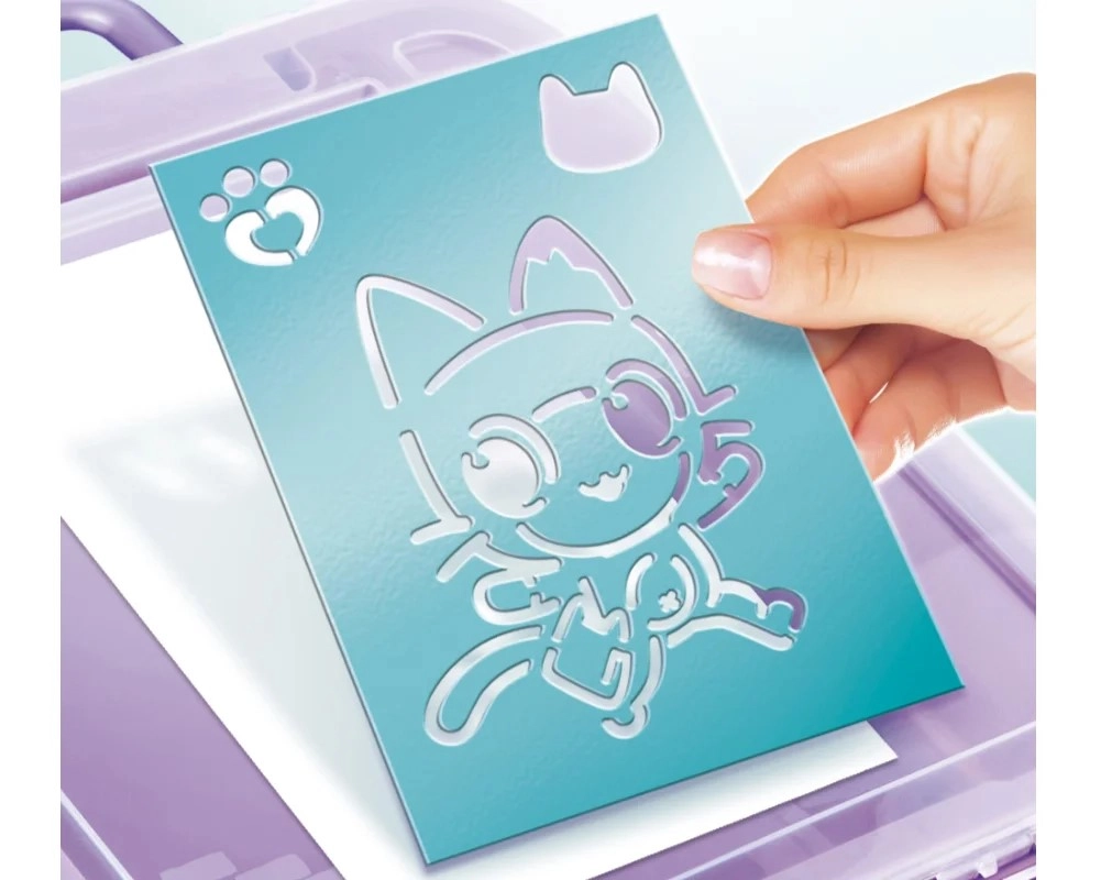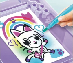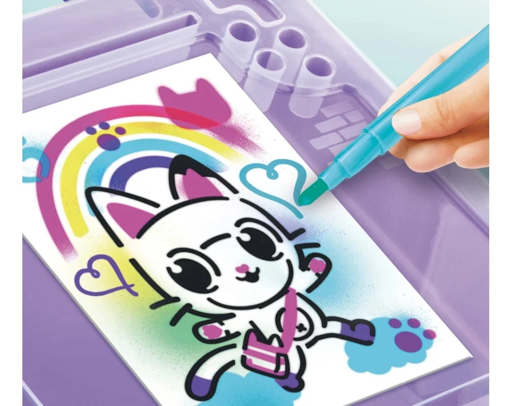 Ta prenosni ustvarjalni set je odlično darilo za male umetnike, ki obožujejo barve in domišljijo. Dovolj je, da vstavite flomaster v napravo, pritisnete gumb in začnete pršiti – preprosto upravljanje je primerno tudi za mlajše otroke. Dizajn, navdihnjen z risanko Gabi in mačja hiša, bo razveselil vse oboževalce ljubkih mačjih junakov.