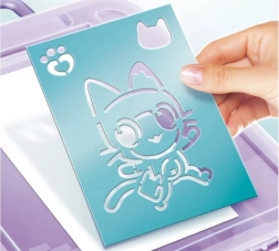 V kovčku najdete vse, kar potrebujete za ustvarjanje izvirnih slik: elektronski airbrush, 8 flomastrov, 10 šablon, 10 listov papirja in list nalepk. Šablone lahko uporabljate večkrat, zato si lahko otroci vedno znova ustvarjajo nove motive in razvijajo svojo domišljijo.