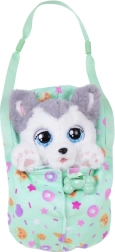 V paketu najdete tudi stilsko torbo za čez ramo z potiskom, usklajenim z ljubljenčkom: mint za haskija, rožnato za rjavega kužka in vijoličasto za dalmatinca. Z nastavljivim pasom lahko otroci svojega prijatelja udobno vzamejo s seboj povsod – na sprehod, v avto ali na obisk.