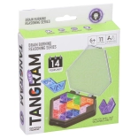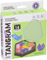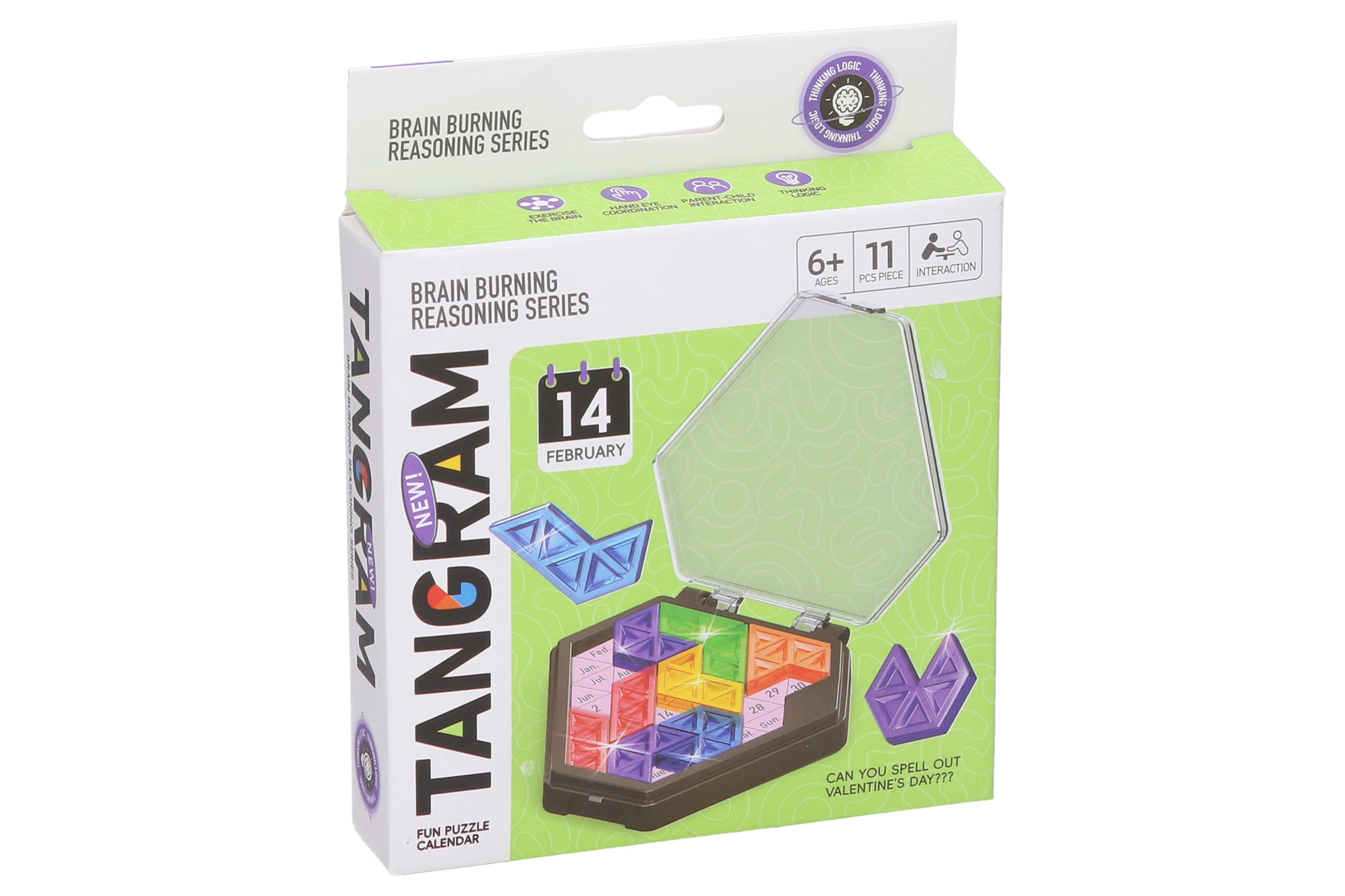 Odkrijte pameten in zabaven način za treniranje logike in domišljije s tem tangramom s premerom 10 cm. Priložene so predloge za sestavljanje različnih likov in tudi konkretnih datumov (materinski dan, valentinovo ipd.), kjer je cilj zložiti koščke tako, da sta vidna le določeni datum in dan v tednu. Na voljo v 2 različicah – črna in bela.