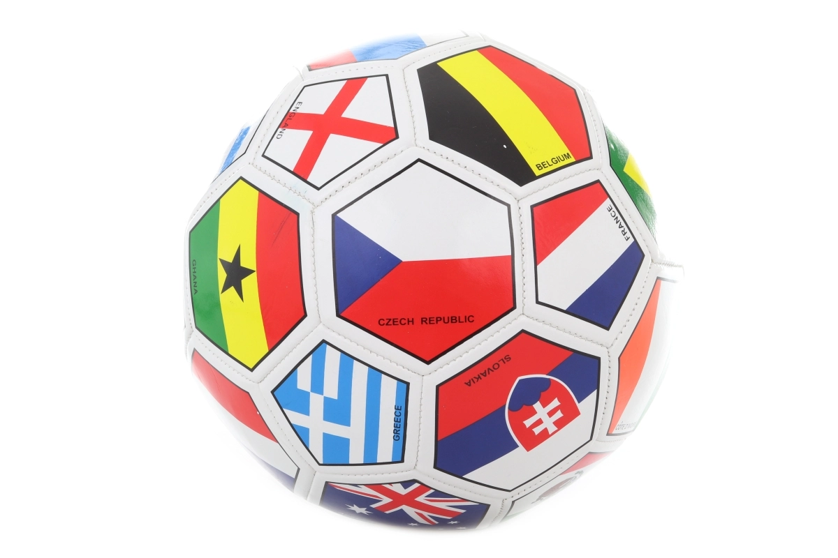 Stilna nogometna žoga z motivi nacionalnih zastav za zabavne treninge in rekreativno igro. Namenjena je za uporabo na neutrjenih površinah (trava, zemlja), dobavljana spuščena in ima po napihovanju premer približno 20 cm (odvisno od napihnjenosti). Idealna za igralce od 3 let naprej, velikost 5.