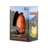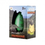 To barvito maxi jajce bo razveselilo tako fante kot dekleta. V jajcu je skrito presenečenje v obliki dinozavra. Da se dinozaver izvali, je treba jajce potopiti v skledo z mlačno vodo. Približno po 24–48 urah bo lupina popokala in dinozaver se bo začel izvaljevati. Otroci lahko postopoma opazujejo, kako se dinozaver izvali iz jajca. Bo to T-rex, stegozaver ali brontozaver? Ali pa kakšen povsem drugačen dinozaver? To bodo izvedeli približno v 72 urah.