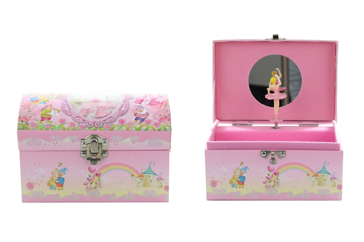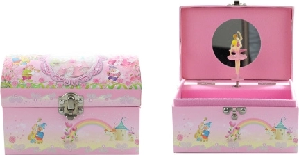 Ta škatlica za nakit z glasbenim mehanizmom je idealna za pregledno shranjevanje prstanov, uhanov in drobnih dodatkov. Po navitju ključka se v notranjosti razpleše balerina in zaigra melodija, ki ustvari čarobno atmosfero na vsaki mizici ali toaletni omarici.