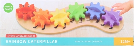 Barvita plastična gosenica iz zobnikov je odlična izobraževalna igrača za male raziskovalce. Otroci z njeno pomočjo razumejo osnove mehanike, očaral jih bo gibanje prestav in mavrične barve. Idealna za razvoj motorike, logike in radovednosti že od 1. leta.