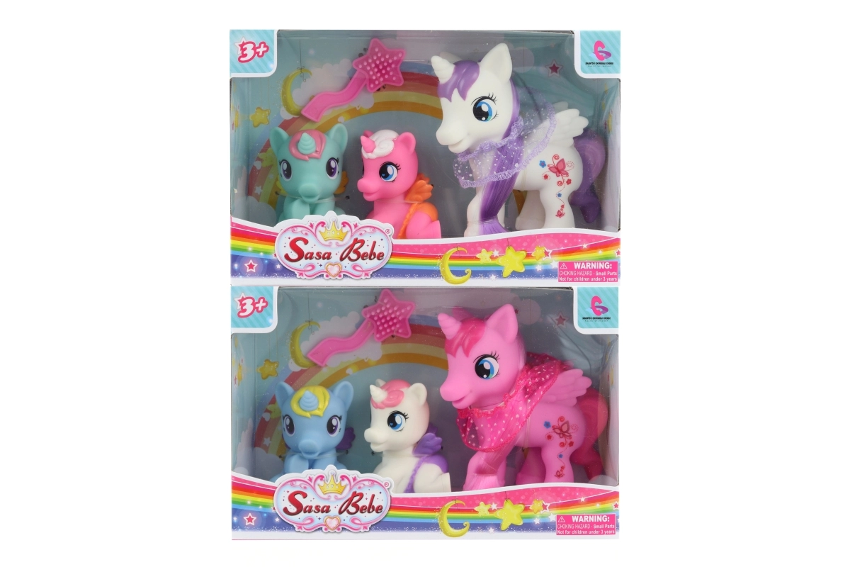 Odkrijte čarobni svet domišljije z barvitim kompletom treh samorogov, ki jih je mogoče zlahka česati in urejati s priloženim glavnikom. Otroci bodo vzljubili njihov igriv dizajn in možnost ustvarjanja lastnih zgodb.