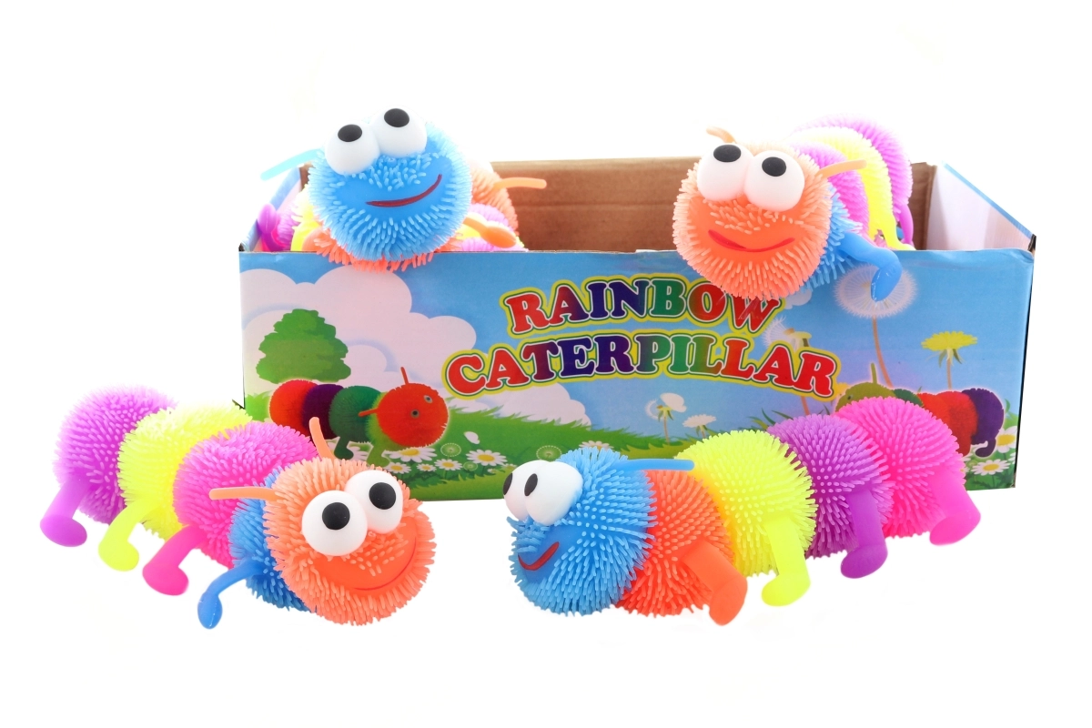Zabavna gumijasta gosenica z svetlobnim učinkom za otroke od 3 let. Ob dotiku ali udarcu utripa lučka v sprednjem delu. Mehka, cofasta površina spodbuja senzorično zaznavanje in fino motoriko. Velikost približno 16,5 cm, idealna za majhne otroške ročice.