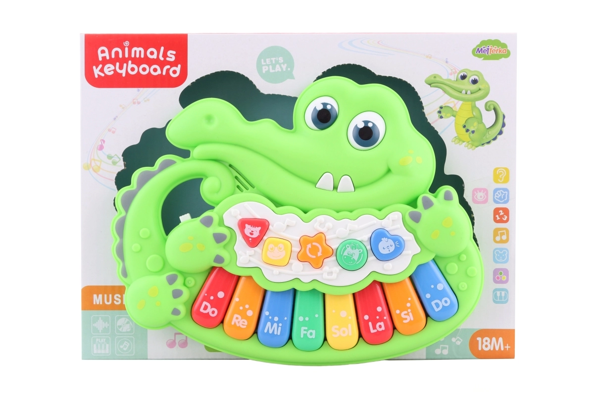 Odkrijte veselje do glasbe s prikupnim klavirčkom v obliki krokodila. Zaradi enostavnega upravljanja in prijetnih zvokov je odlična izbira za prve glasbene korake otrok od 18 mesecev naprej. Igrača podpira razvoj čutov, koordinacijo oko–roka in kreativnost.