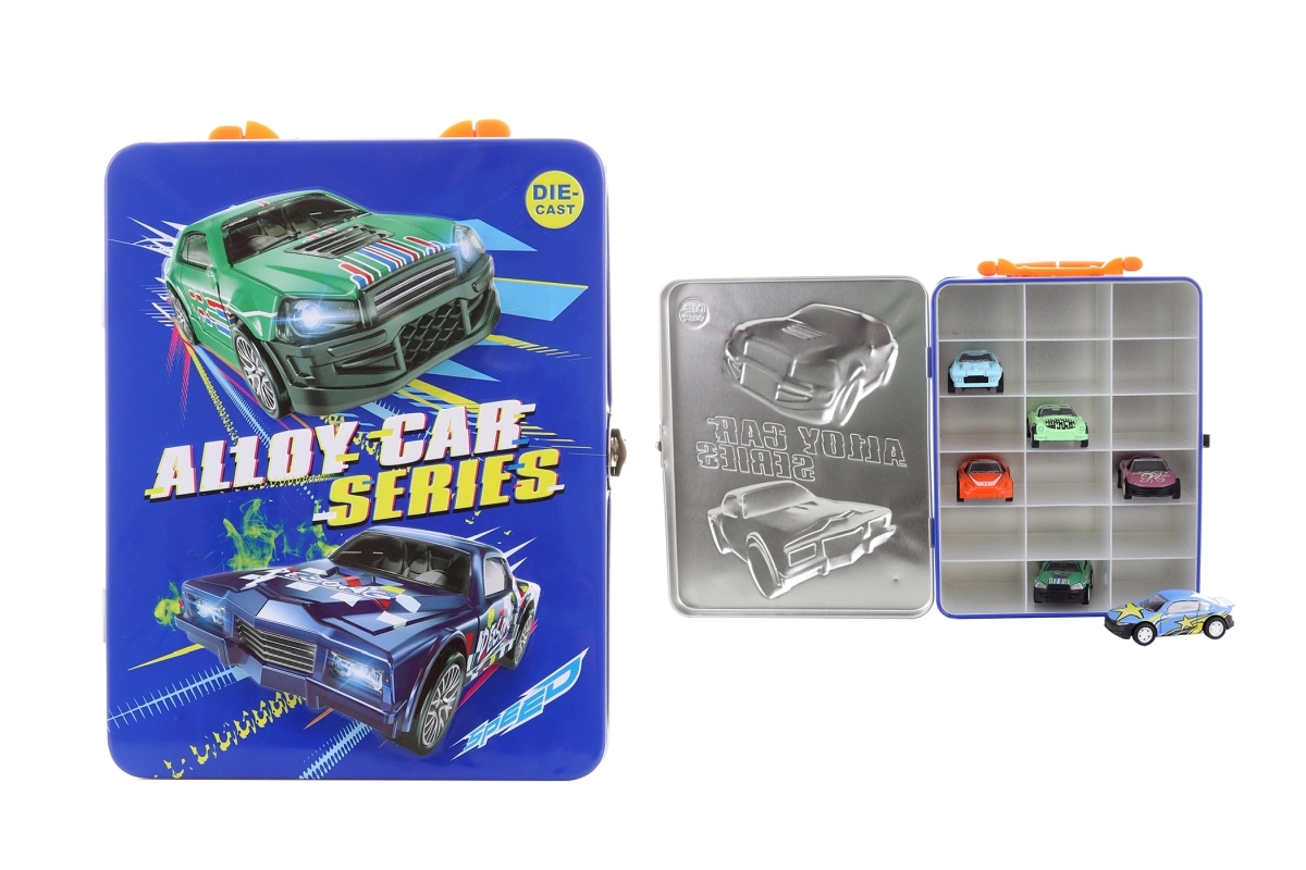Razveselite zmagovalce s kompletom 6 kovinskih avtomobilčkov v trpežni kovinski škatli. Vsak avtomobilček je opremljen z mehanizmom povratnega pogona – le potegnite nazaj in spustite. Škatla je zasnovana tako, da varno shrani do 18 avtomobilčkov, zato poleg zabave dobite tudi praktično rešitev za pregledno shranjevanje.