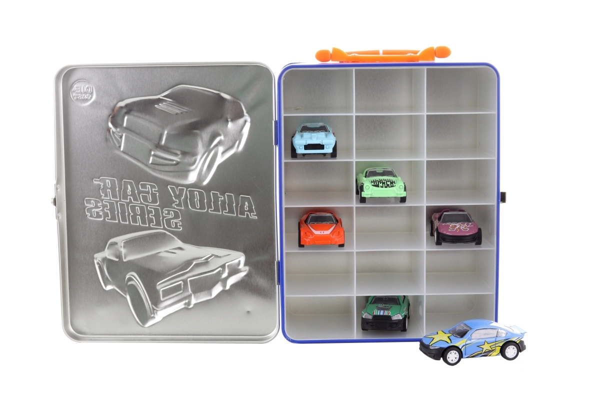 Zaradi kompaktnih mer je komplet primeren za potovanja, otroško sobo in kot stilsko darilo. Čvrsta kovinska konstrukcija ščiti vsebino in zagotavlja dolgo življenjsko dobo. Avtomobilčki imajo velikost, idealno za male roke in enostavno upravljanje.