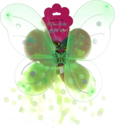 Prosojna metuljčja krila z bleščečimi pikami se zlahka namestijo in udobno držijo zaradi elastičnih trakov. Idealna za dolgotrajno igro brez tiščanja.