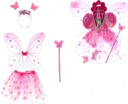 Pripravite malo vilo na čarobno pustolovščino. Ta otroški komplet izstopa z lahkimi krili z bleščečimi detajli, udobnim tutu krilcem s pikami in usklajenimi dodatki za popoln kostum. Zahvaljujoč elastičnim trakovom in raztegljivemu pasu se preprosto obleče in dobro prilega.