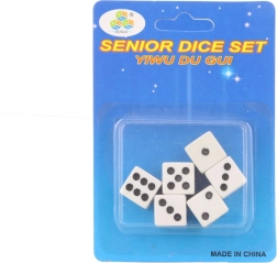 Praktičen set igralnih kock v blistro pakiranju vsebuje 6 plastičnih kock velikosti približno 1,5 cm. Kompaktno pakiranje (pribl. 9 × 12,5 cm) je idealno za na pot, domače igralne sete ali kot nadomestne kocke.