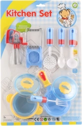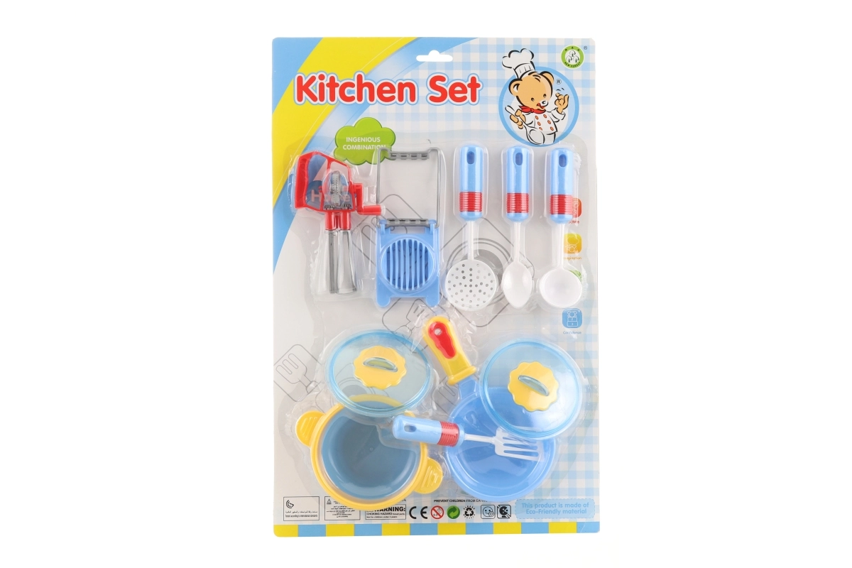 Ta pisani komplet plastičnega posodja razvija otrokovo domišljijo in motoriko pri igri kuhanja. Zahvaljujoč varnim in lahkim delom lahko otroci posnemajo pravo kuhanje in na zabaven način odkrivajo svet kuhinje.