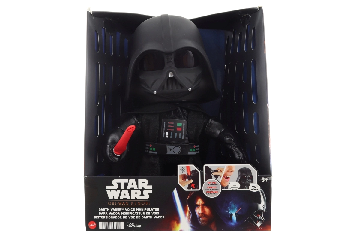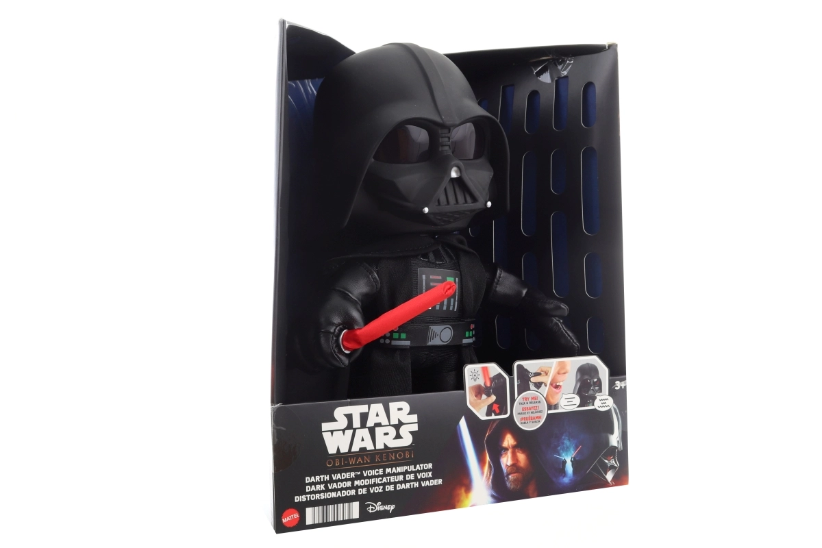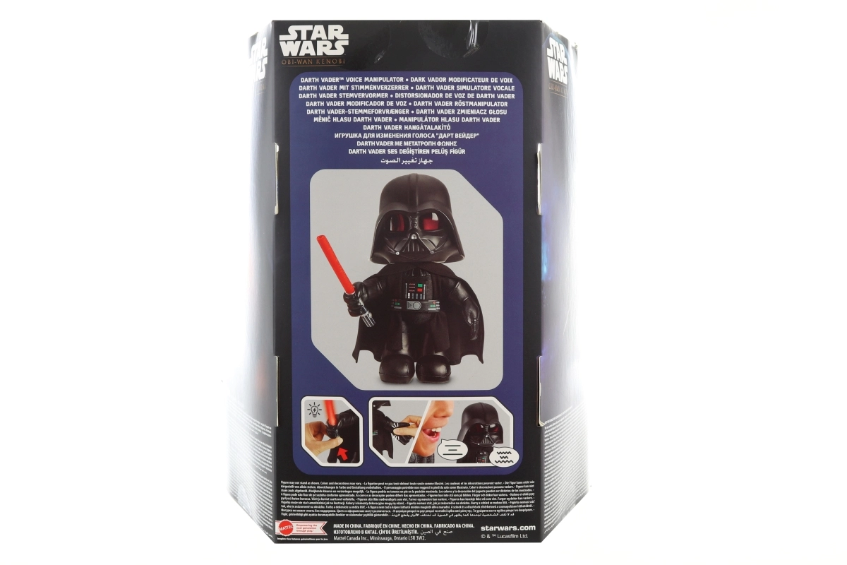 Priljubljeni zlikovec iz galaksije daleč, daleč stran prihaja v obliki kakovostne plišaste igrače, ki razveseli tako pri igri kot v zbirki. Lik Darth Vader je opremljen s svetlečim mečem in modulatorjem glasu, kar spodbuja otroško domišljijo do maksimuma. Upravljanje je preprosto – funkcije aktivirate s pritiskom na roko.