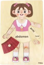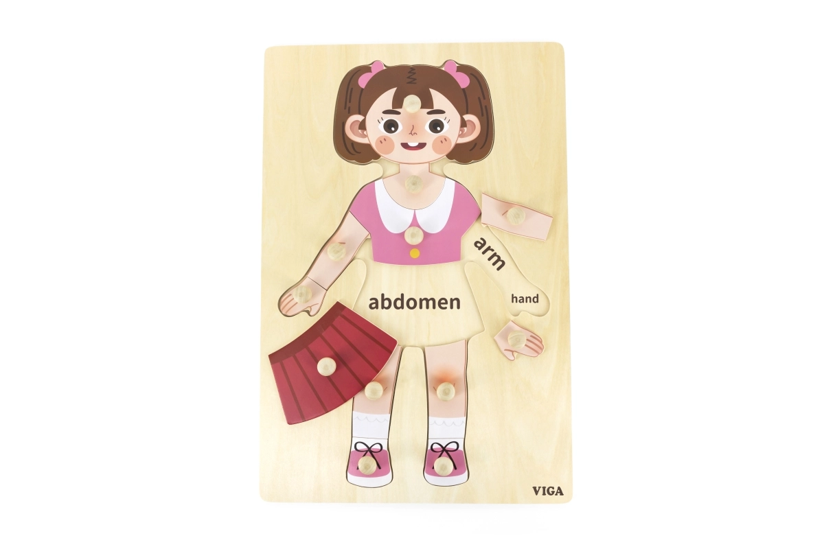 Ta lesena vstavljanka – deklica je odlična pripomoček za prvo spoznavanje človeškega telesa in razvoj koordinacije oko–roka. Zaradi robustne izdelave in prijetnega dizajna jo bodo otroci hitro vzljubili ter igrivo urili fino motoriko, potrpežljivost in zbranost.