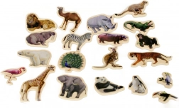 Ta komplet magnetov z motivi afriških živali otrokom prinaša zabavno in poučno obliko igre. Figurice so izdelane iz trpežnega lesa z realističnim potiskom, magnet na zadnji strani pa omogoča odličen oprijem na hladilniku, magnetni tabli ali drugih kovinskih površinah.