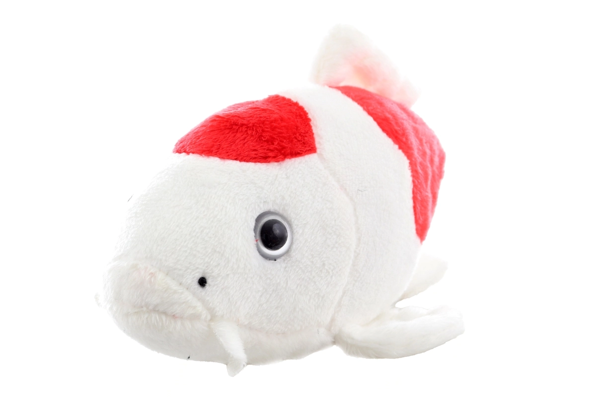 Ta mehak plišasti koi krap v belo-rdeči barvni kombinaciji bo razveselil vsakega otroka in ljubitelje živalic. Je prijetno mehak, lahek in lepo sede v roko, zato je popoln za crkljanje, igro in umirjanje pred spanjem.
