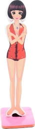 Stojalo z osnovo, punčka, približno 14 magnetnih kosov (obleke, čevlji, dodatki)