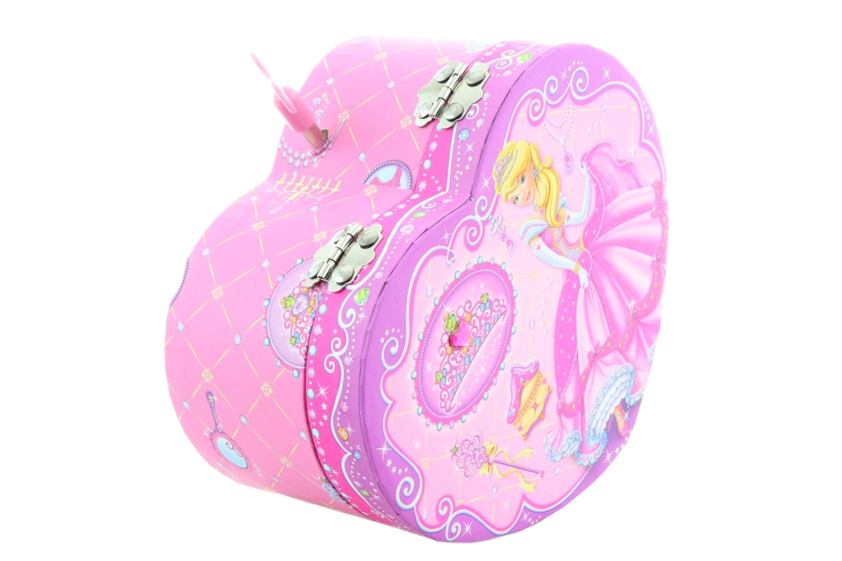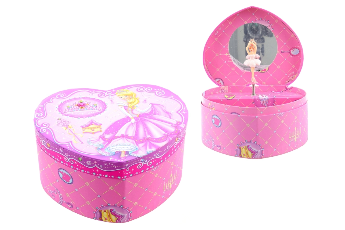 Ta ljubka škatlica za nakit v rožnatem princeskinem slogu je idealna za shranjevanje prstanov, uhanov in drugih drobnarij. Po odprtju se pred okroglim ogledalcem zavrti balerina in zazveni prijetna glasba, ki pričara čarobno vzdušje.