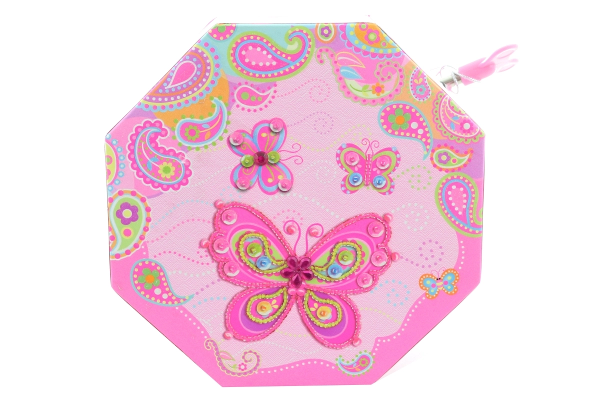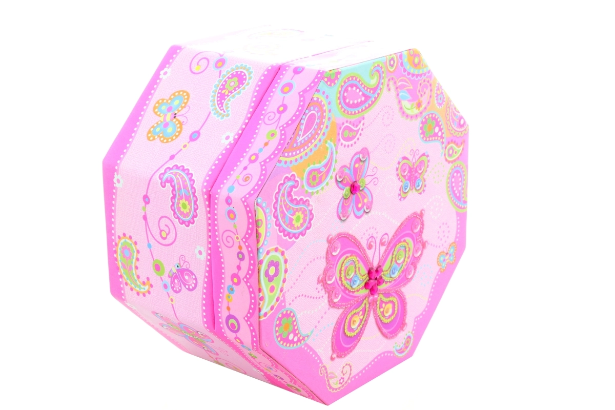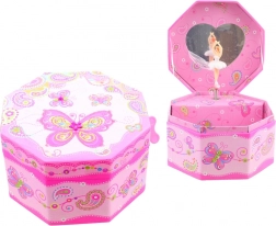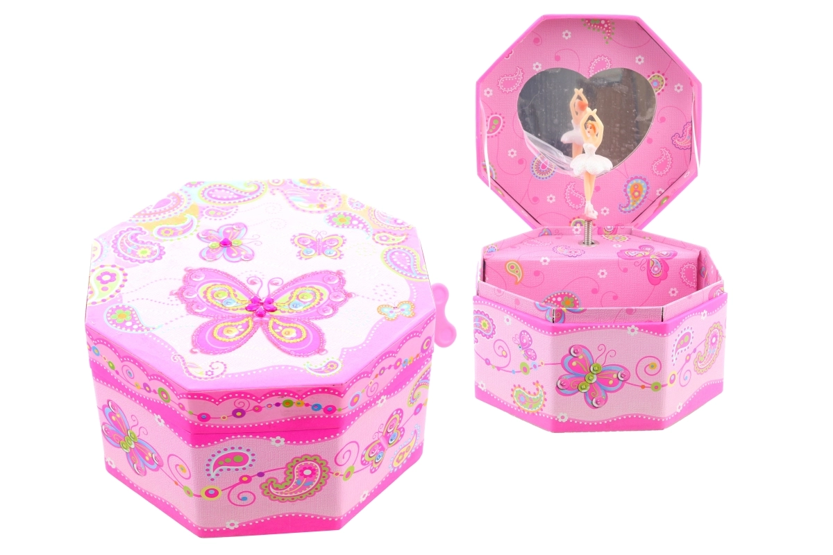 Očarljiva glasbena škatlica za nakit z motivom metuljev prinaša čar klasičnih glasbenih skrinjic. Po navijanju ključka se v notranjosti zavrti balerina, ki pleše ob prijetni melodiji. V notranjosti boste našli tudi praktično ogledalce, ki olajša shranjevanje in pregled nakita.