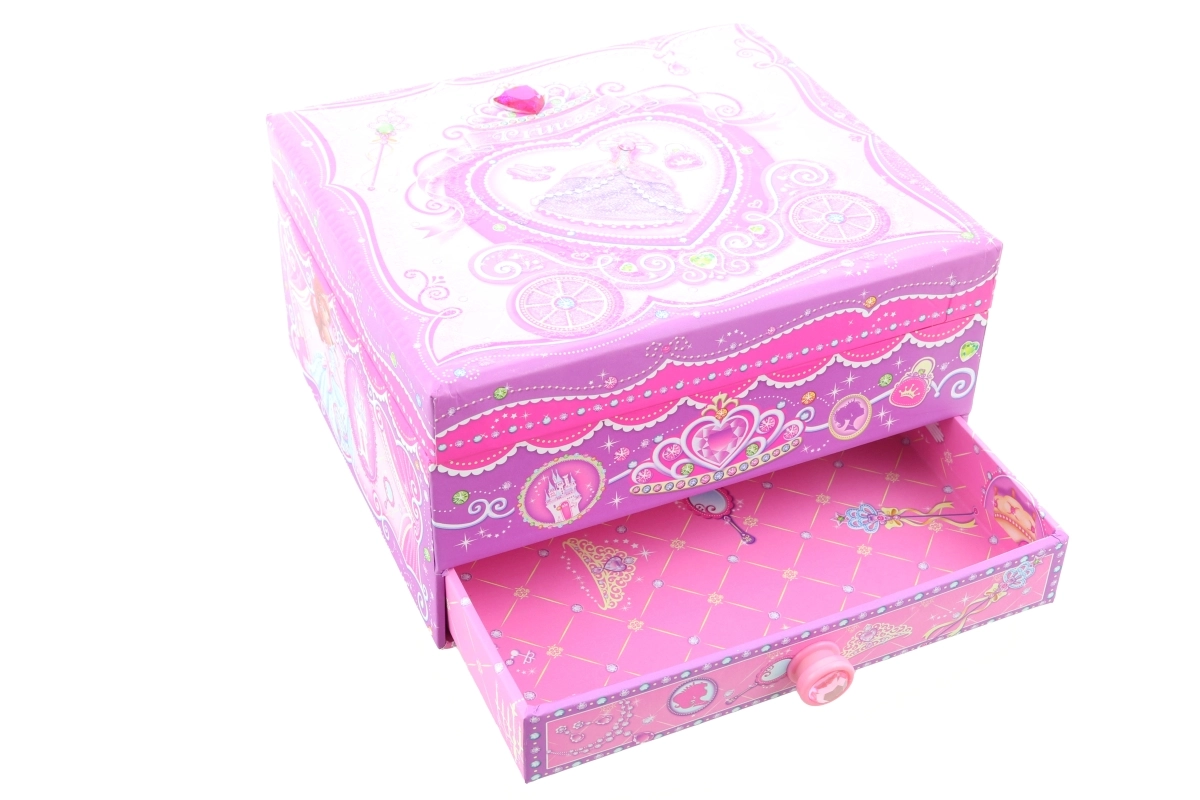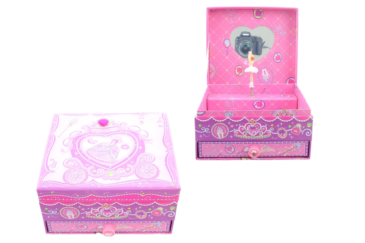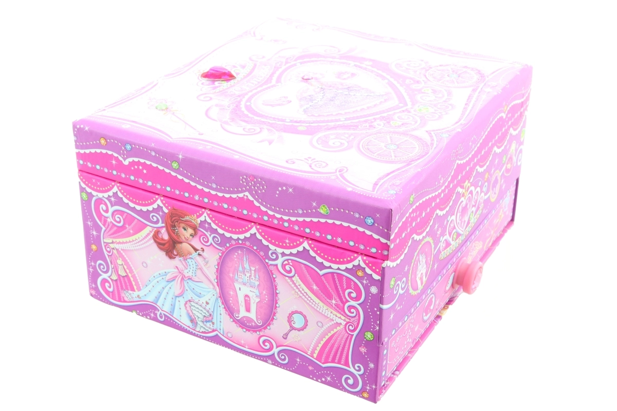 Očarljiva glasbena škatlica za nakit z motivom princese prinaša veselje ob vsakem odprtju. Po navijanju ključka se pred ogledalcem zavrti balerina in zazveni nežna melodija, ki ustvari pravljično vzdušje. Škatlica ponuja pregleden razpored za droben nakit in skrivne zaklade.