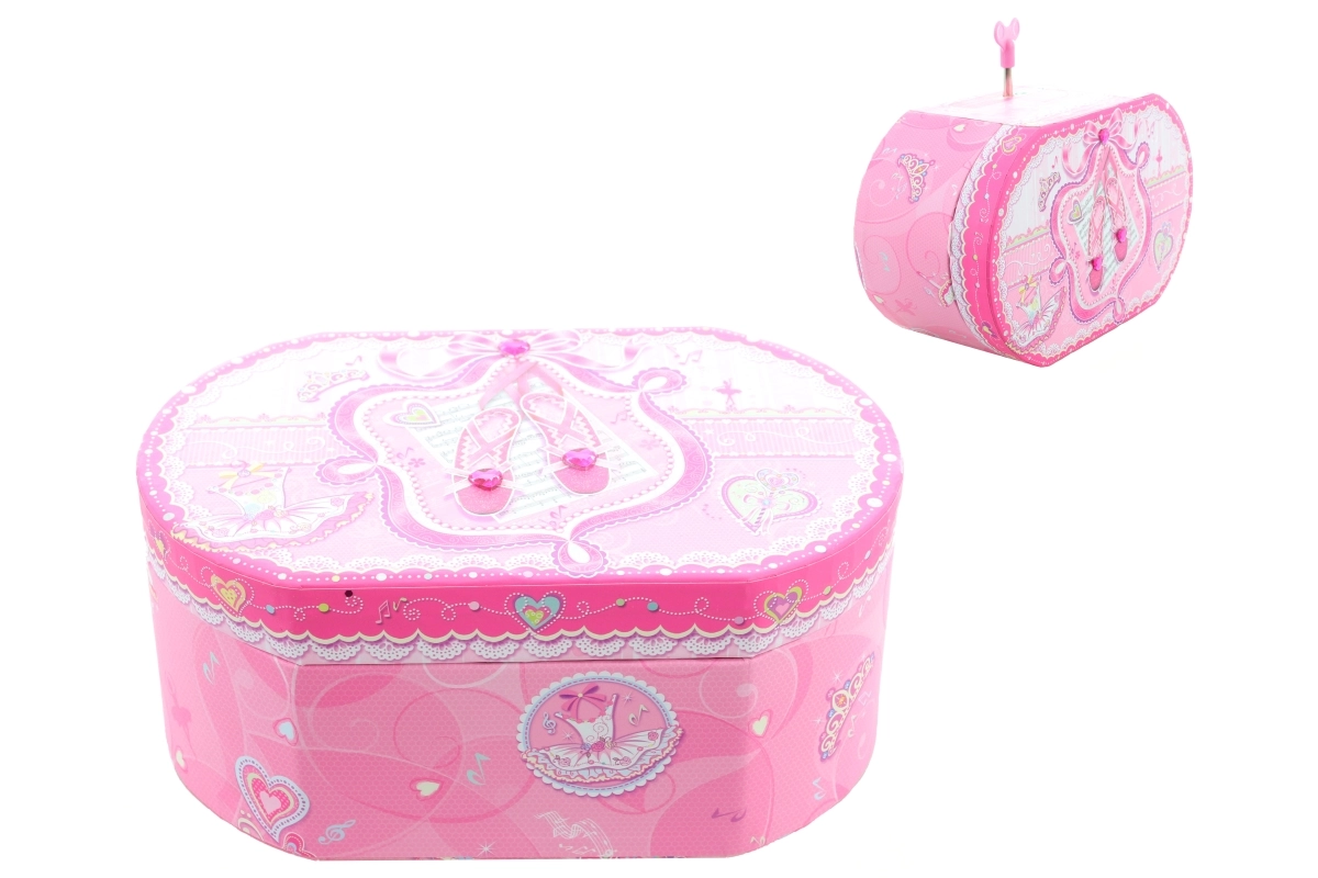 Notranje ogledalce olajša preizkušanje nakita, medtem ko ovalna oblika in dekor z baletnimi motivi lepo polepšata otroško sobo ali toaletno mizico. Škatlica je idealna za shranjevanje prstanov, uhanov in drobnih zakladov.