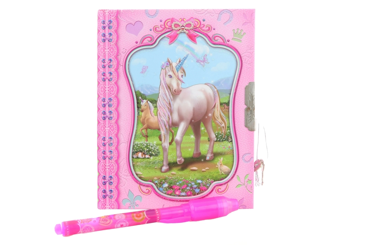 Ta čudovit tajni dnevnik z motivom samoroga je idealen za pisanje dnevnika, skrivnih sporočil in ustvarjalnih idej. Posebno pero piše z nevidnim črnilom, ki se prikaže le pod UV svetlobo, integrirano na koncu peresa. Z dvema ključkoma bodo vsi zapiski ostali na varnem.
