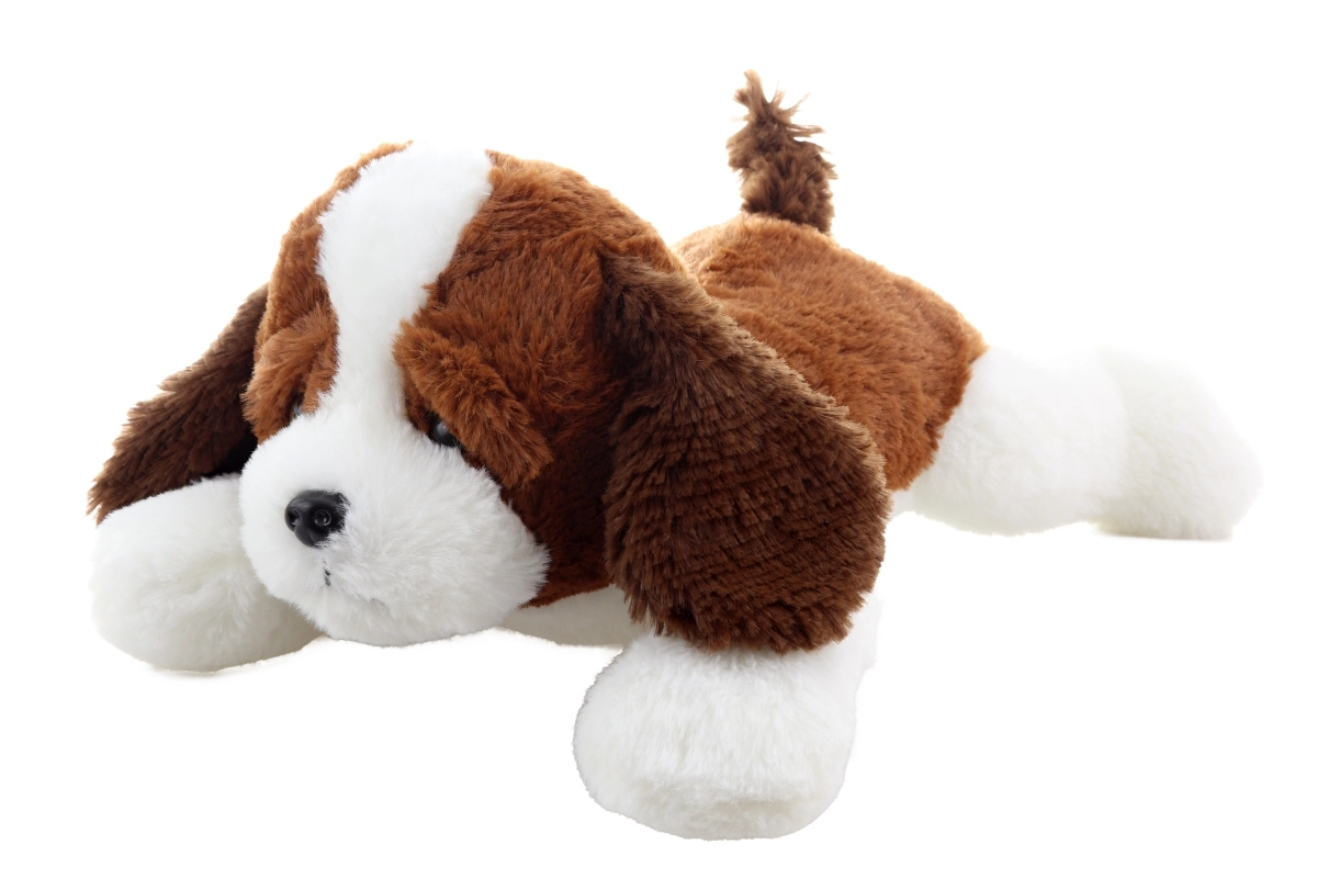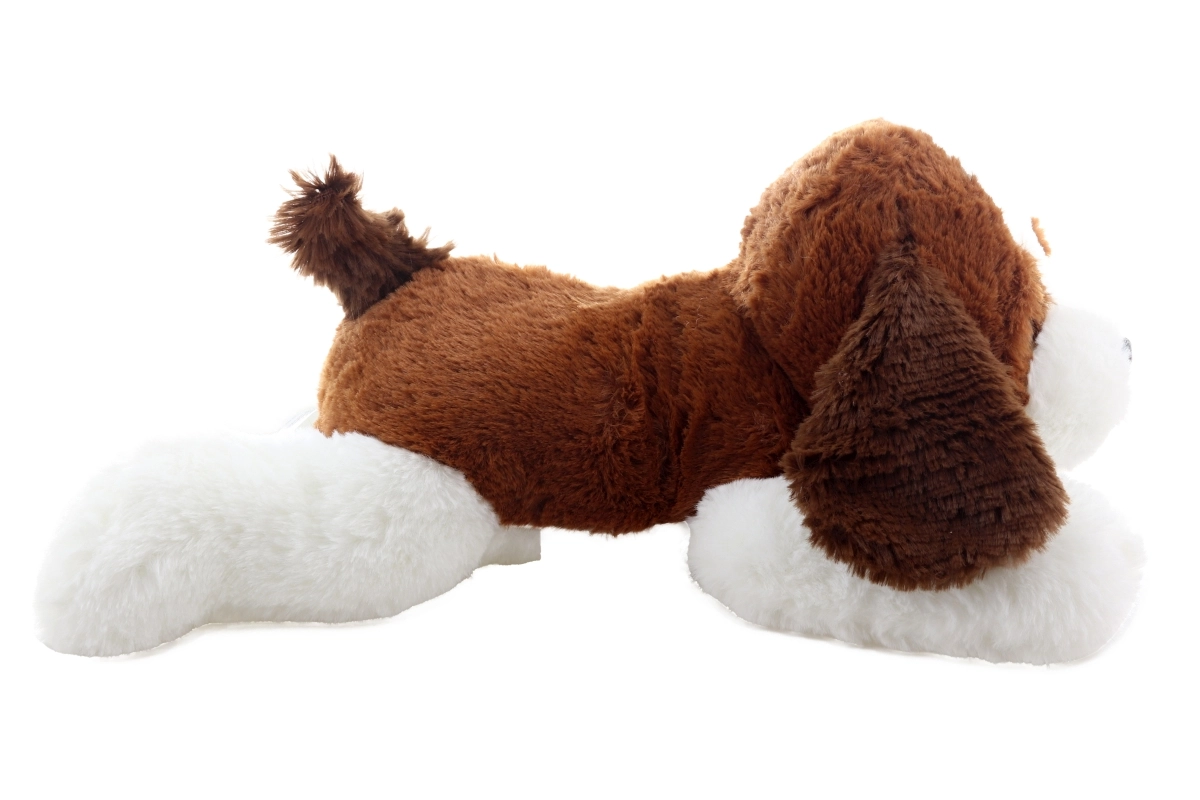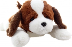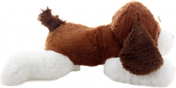 Ta svetel plišasti kužek z rjavimi ušeski in belimi tačkami bo hitro osvojil srca malih in velikih. Zaradi mehke površine in ležečega položaja je odličen za crkljanje, počitek in kot dekoracija otroške sobe. Varna izvedba brez majhnih snemljivih delov je primerna za dojenčke.