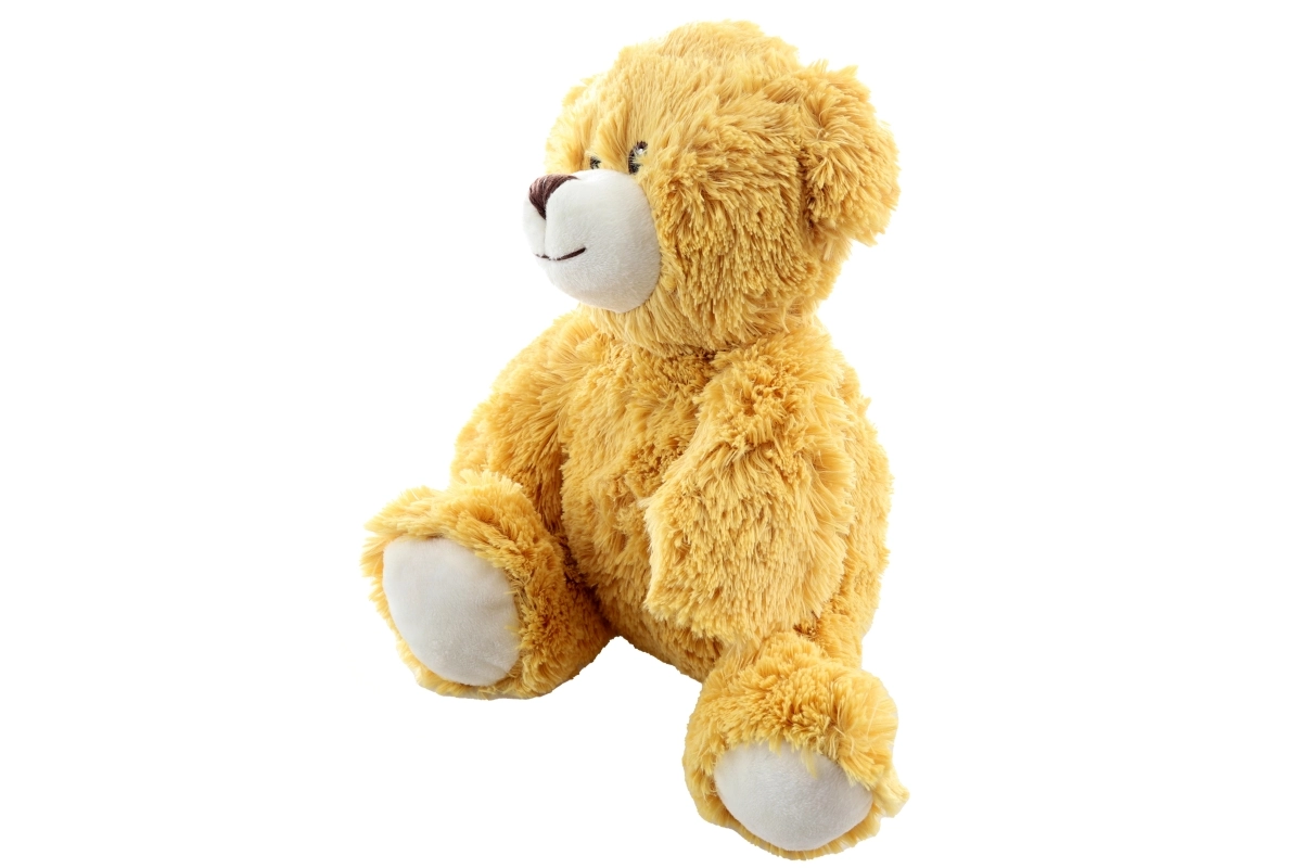 Ta klasični plišasti medvedek v bež-zlatem odtenku ima zelo mehko dlako, belo gobček in tačke ter nežno izvezen nasmeh. Zasnovan je tako, da nudi največje udobje in varnost pri crkljanju in uspavanju.