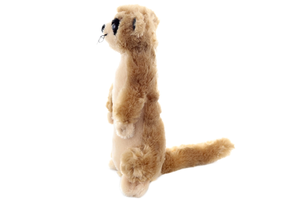 Ta plišasta surikata izstopa po nežnem in mehkem materialu, ki kar vabi k crkljanju. Zahvaljujoč realističnemu videzu z značilnimi temnimi očesnimi kolobarji in pokončno držo deluje prisrčno in hkrati avtentično.