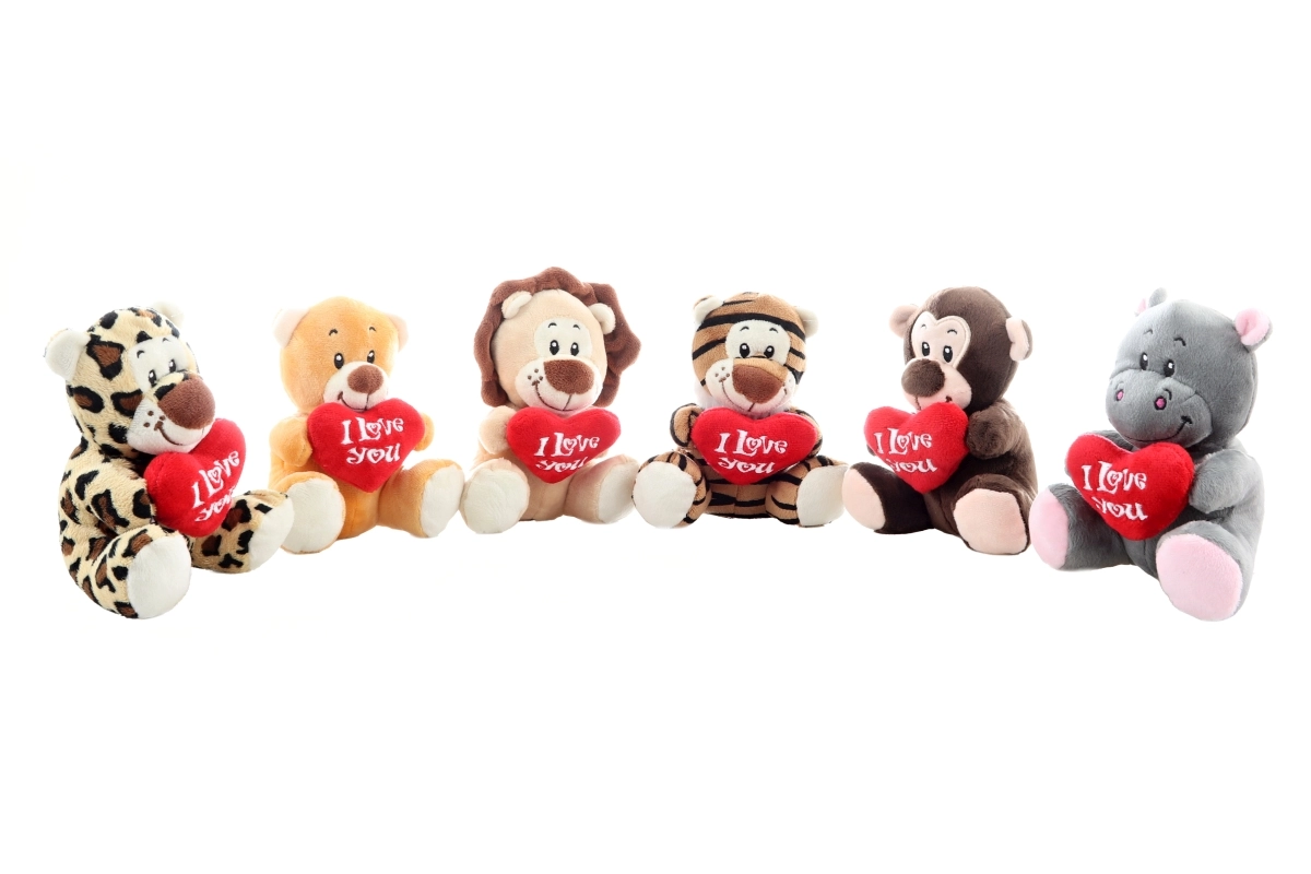 Te plišaste živalce višine približno 14 cm držijo tekstilni srček z vezenim napisom »I Love You«. Zaradi nežnega, mehkega materiala in skrbne izdelave so idealne za objeme in vsakodnevno igro. Vsak kos iz te romantične kolekcije je odličen kot drobno darilo za otroke, partnerja ali prijatelje.