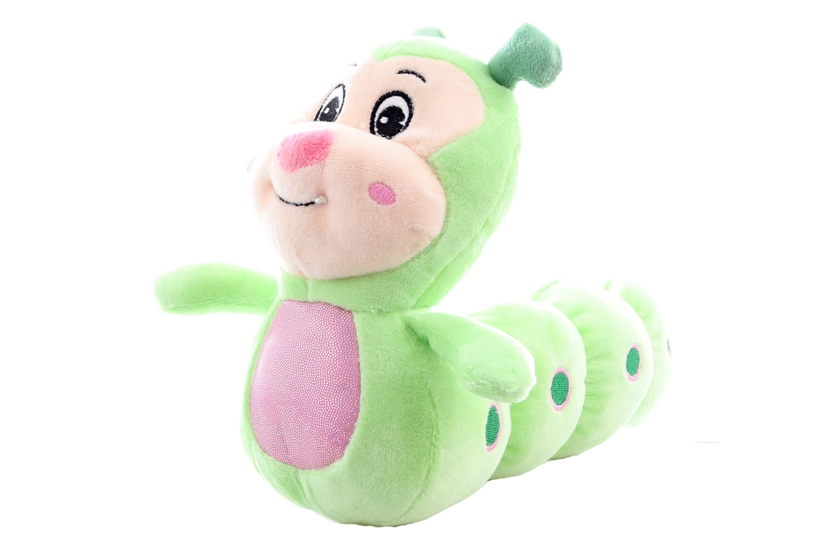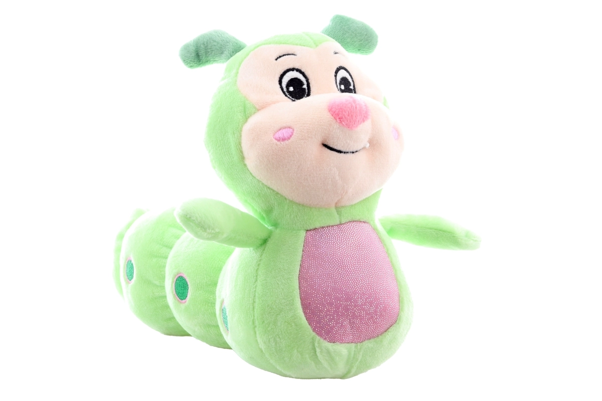 Ta mehka gosenica navduši z nežno površino in prijaznim nasmehom. Zaradi kompaktnih mer se odlično prilega otroškim ročicam ter postane zvest spremljevalec v posteljici, vozičku in na potovanjih. Varna zasnova brez majhnih snemljivih delov je primerna za dojenčke in malčke.