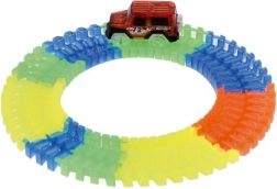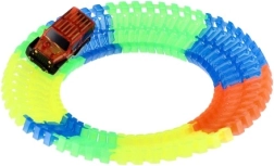 Uživajte v odličnih dirkah s svetlečo prilagodljivo stezo, ki jo preprosto sestavite po lastni domišljiji. Deli se preprosto zaskočijo skupaj, stezo pa lahko kadarkoli preoblikujete – ravnine, zavoji in zanke ne predstavljajo težav po zaslugi upogljivih segmentov.