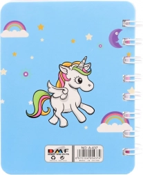 Iščete prisrčen in praktičen zvezek za v torbico, aktovko ali peresnico? Ta kompaktni zvezek s samorogom v pastelnih barvah prinaša veselje v vsakodnevne zapiske. Črtasti listi z barvnim robom poskrbijo za pregledno pisanje, spiralna vezava pa omogoča udobno obračanje in popolno odpiranje strani.