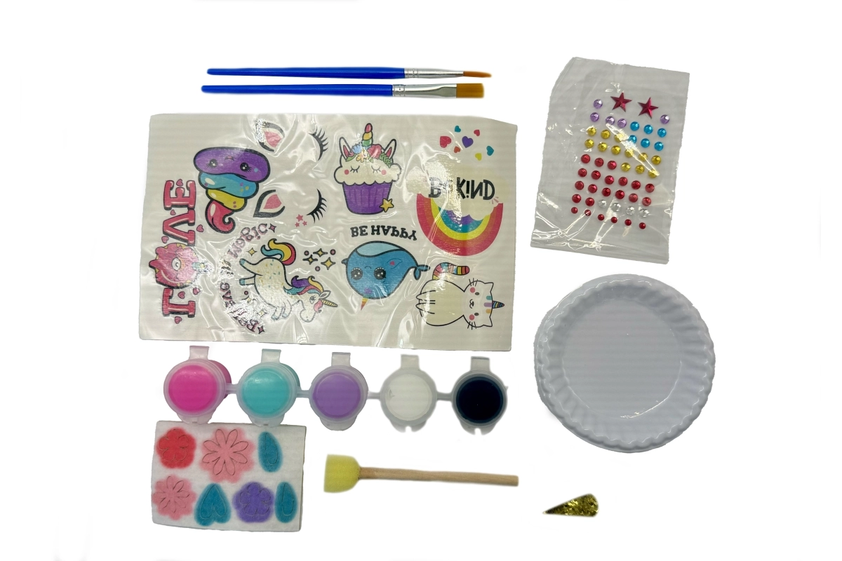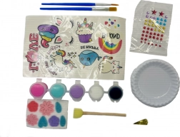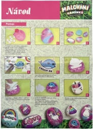Komplet vsebuje 8 kamnov, 5 barvic, 2 čopiča, 52 samolepilnih draguljev in dodatke. Zahvaljujoč lončkom z barvo, ki se enostavno zapirajo, ter penastemu tamponu je delo bolj čisto in natančno. Dimenzije pakiranja približno 18 × 25 × 5 cm. Starost: 3+.