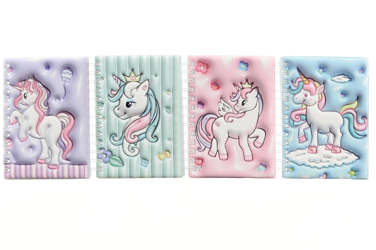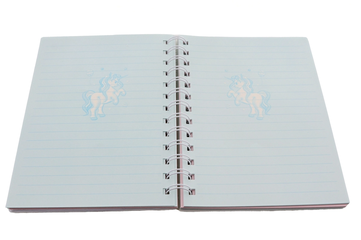 Stilna beležka z enorožcem je idealna za zapiske, dnevnik, šolske zapise in načrtovanje. Kakovostna spiralna vezava drži strani skupaj ter omogoča njihovo lahko obračanje in popolno odpiranje na ravno. Oblazinjene, oblikovane platnice s 3D učinkom dajejo beležki edinstven videz in prijeten otip.