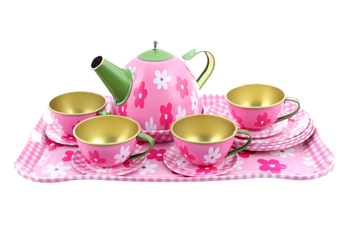 Slogovit kovinski čajni set z nežnim cvetličnim motivom bo razveselil vsako malo gostiteljico. Vsebuje vse za popolno igro čajanke – od čajnika do krožničkov in pladnja. Set je lahek, trpežen in varen za otroke od 3 let. Popoln komplet, cvetlični dizajn in vzdržljiva kovinska izdelava zagotavljajo ure zabave ter razvoj otroške domišljije.